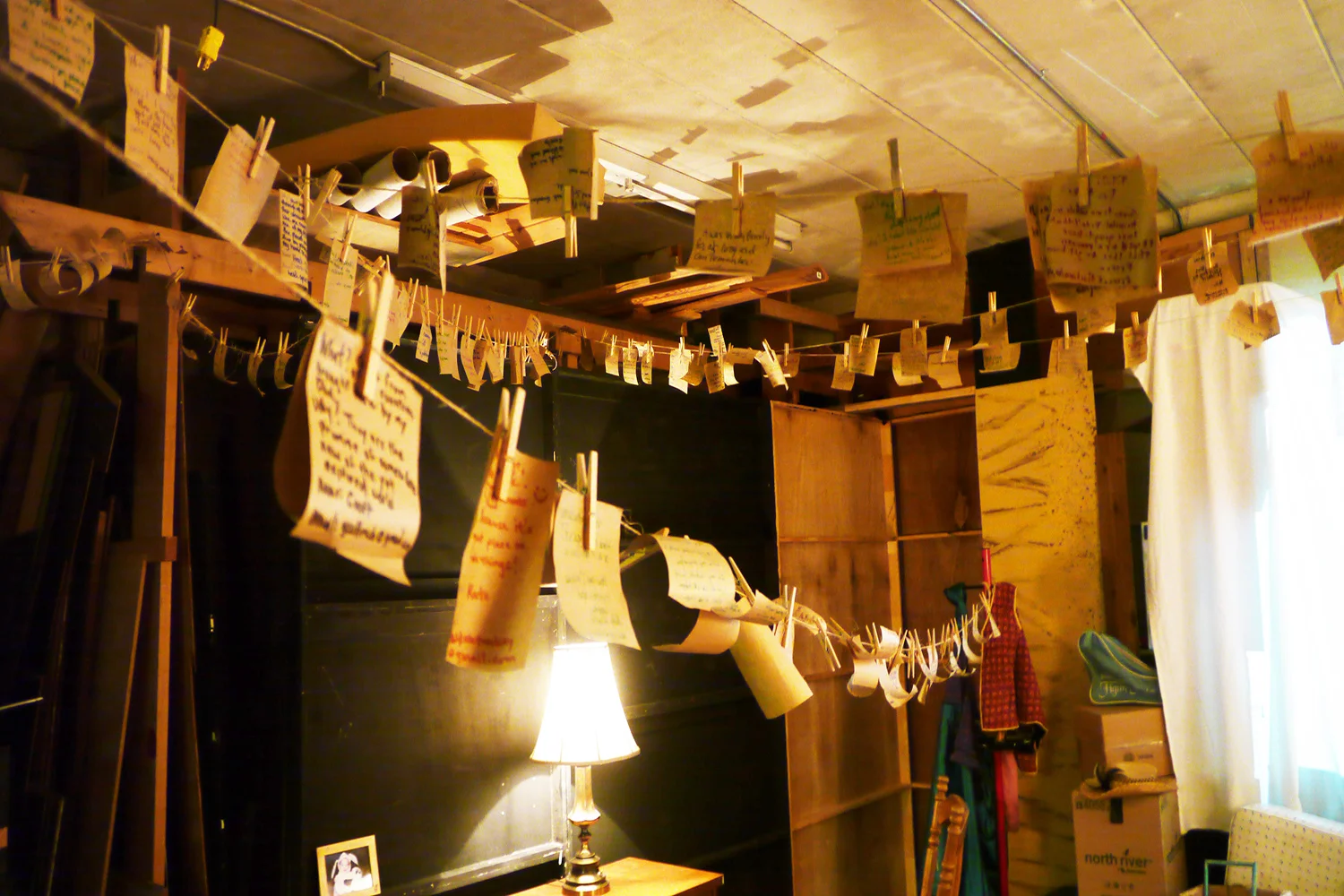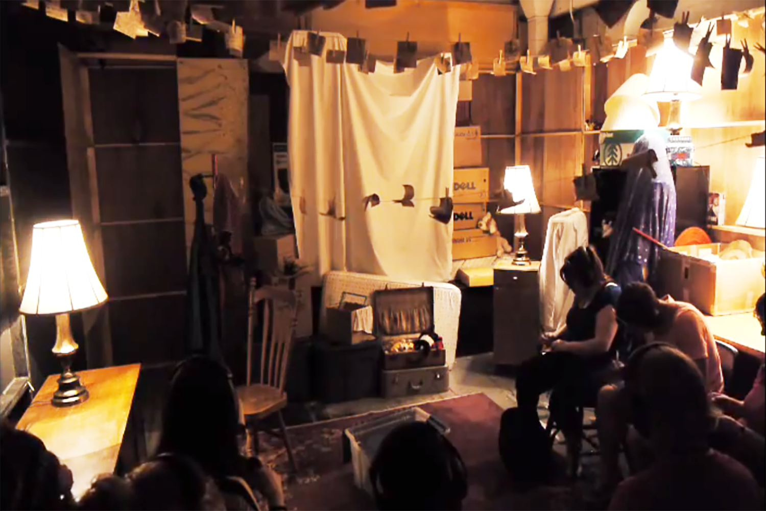 Stor(y)age is an interactive audio-performance that invites the audience into a world of remembrance to examine their own material possessions. Wearing headphones and carrying an FM transmitter, the audience takes a guided trip up to an attic accompanied by an audio montage of others' self reflections. Along the way, they are asked to reflect on what they keep, where they keep it, and most importantly, why.